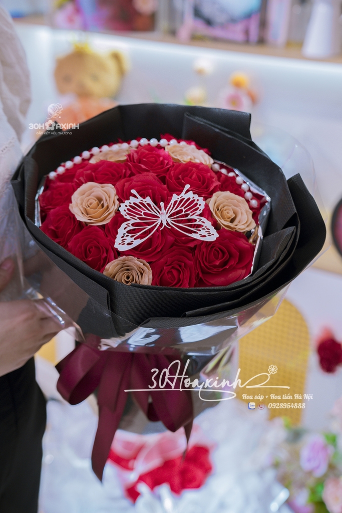 Bó hoa mang thông điệp: “Tình cảm này không phai theo thời gian, như chính những cánh hoa sáp bền mãi”