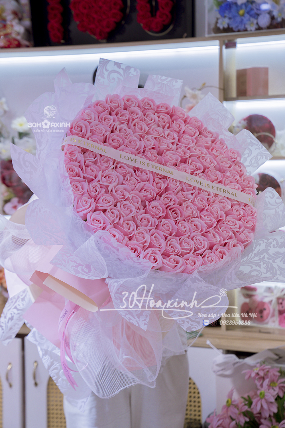 Bó Hoa Sáp Thơm 99 Bông Màu Hồng – Tình Yêu Vĩnh Cửu, Mãi Mãi Một Người 💗