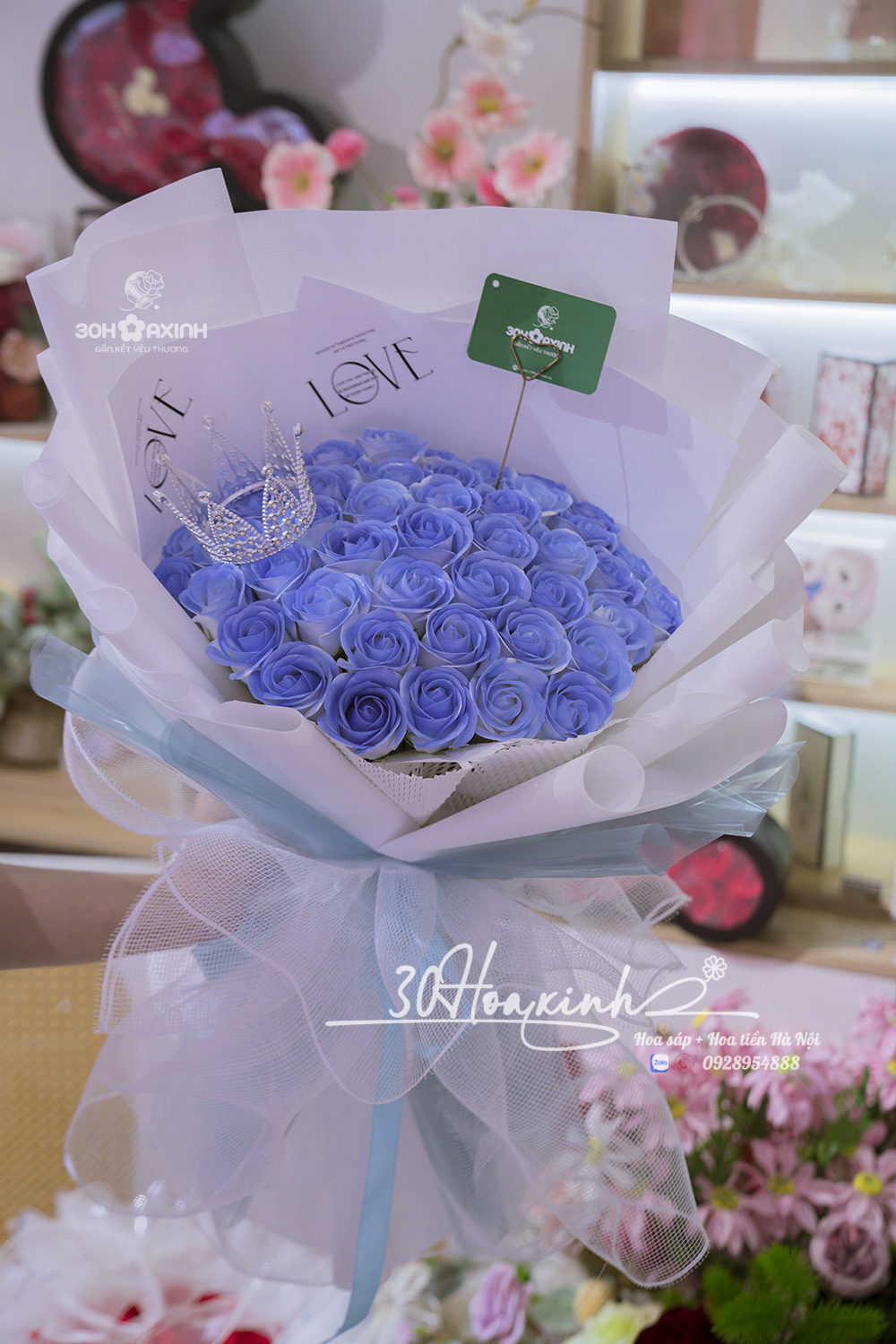 Bó Hoa Sáp Màu Xanh Không cần phải rực rỡ để thu hút ánh nhìn, màu xanh mang một vẻ đẹp riêng – trầm lắng, nhẹ nhàng nhưng đầy sâu sắc.