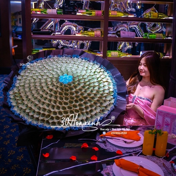 Một món quà khiến bất kỳ ai cũng phải trầm trồ ngay từ ánh nhìn đầu tiên. Bó hoa tiền siêu to được làm từ 300 tờ tiền mệnh giá 100.000 đồng, được sắp xếp tỉ mỉ và tinh tế trong từng chi tiết.