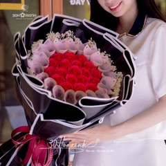 Bó hoa tiền thật mệnh giá 50k kết hợp hoa sáp thơm cao cấp bao gồm