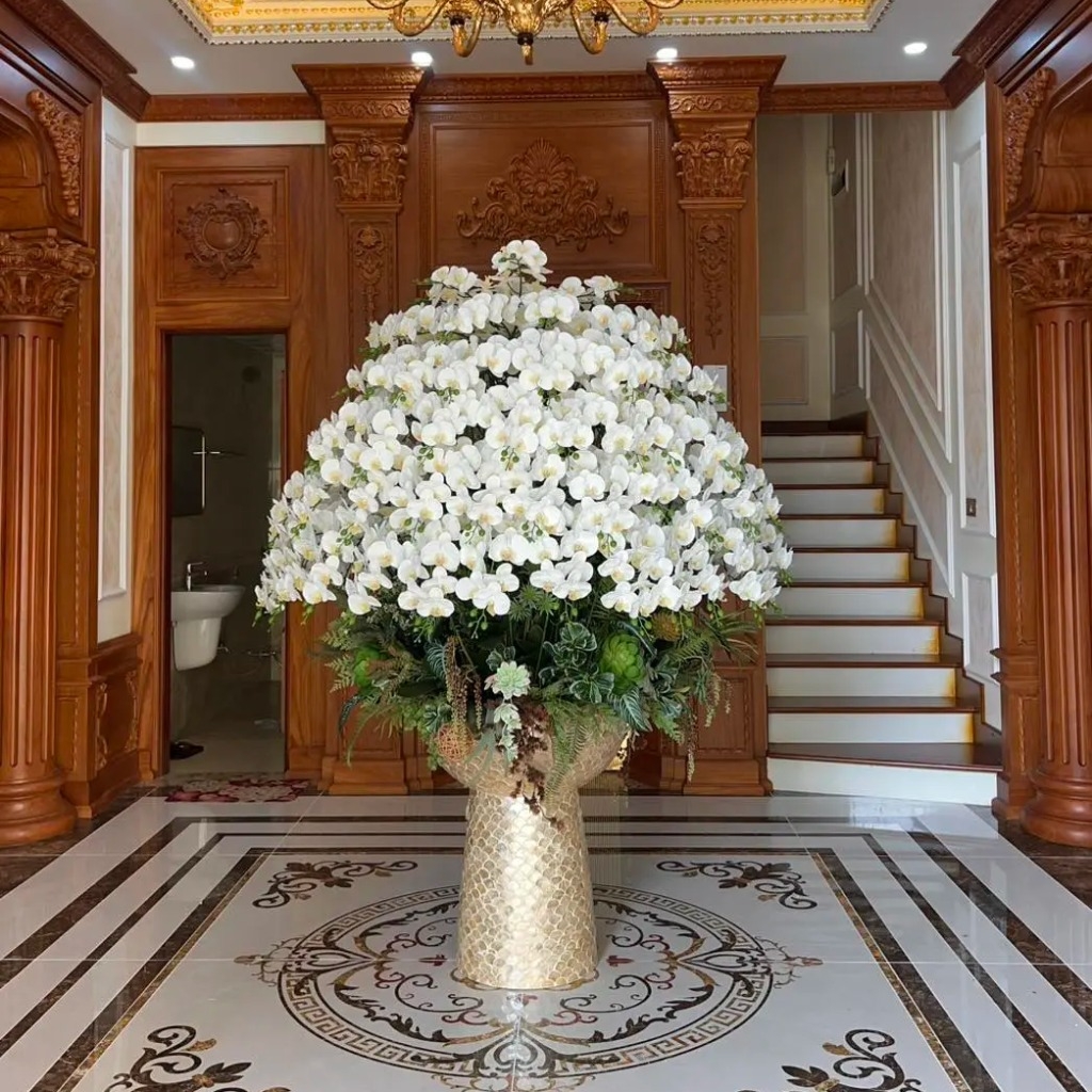 Với kích thước lớn, chậu lan không chỉ đơn thuần là vật trang trí mà còn giống như một điểm nhấn nổi bật trong không gian. Khi đặt ở giữa sảnh hoặc một góc phòng lớn, chậu lan giúp không gian trở nên sang hơn, sáng hơn và có cảm giác đắt giá hơn.