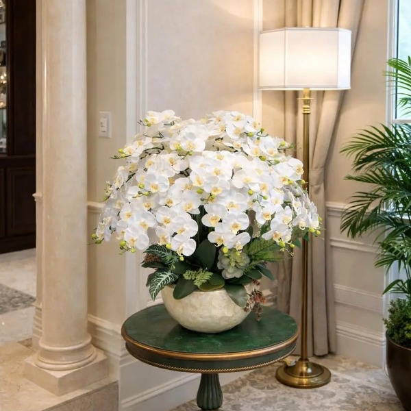 Đặt một chậu lan hồ điệp trắng trong không gian sẽ giúp căn phòng trở nên sáng hơn, sang hơn và có chiều sâu hơn. Với vẻ đẹp tinh tế, sản phẩm phù hợp với cả phong cách hiện đại lẫn cổ điển.