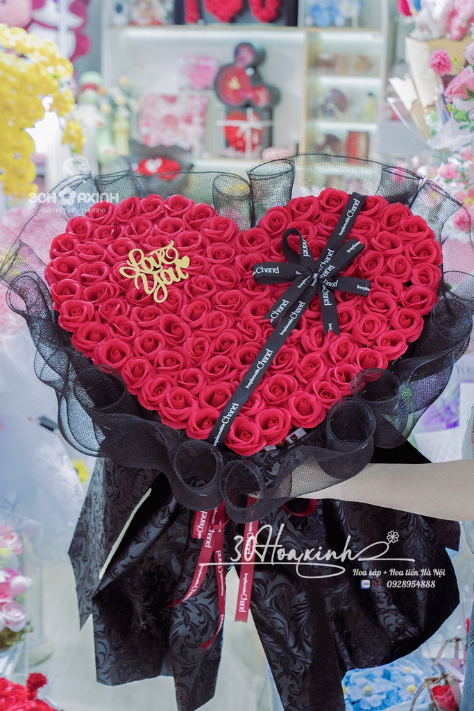 Hoa sáp trái tim màu đỏ với 99 bông hồng 🌹 – biểu tượng cho tình yêu vĩnh cửu, trọn đời trọn kiếp.