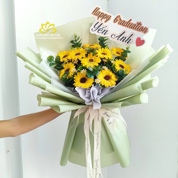Hoa sáp hướng dương được tặng trong ngày lễ tốt nghiệp, tặng thầy cô giáo, bạn bè, người mình yêu thương, mong người nhận gặp nhiều may mắn và đạt được thành công trong tương lai