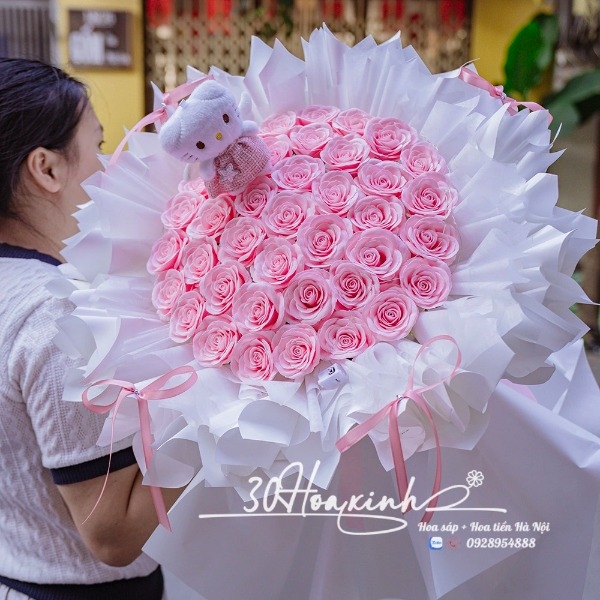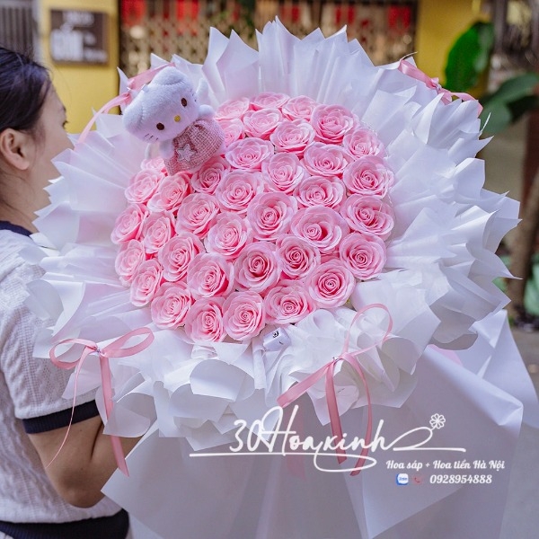 🌸 Bó Hoa Sáp Màu Hồng Ecuador Công Chúa – Thơm Ngọt Ngào, Tặng Kèm Gấu Bông Dễ Thương