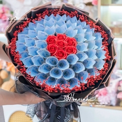 Bó hoa tiền thật mệnh giá tiền 20k kết hợp hoa sáp thơm cao cấp bao gồm