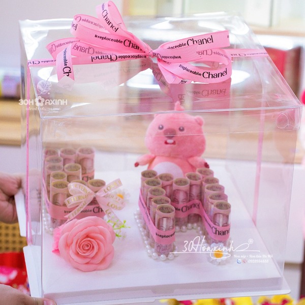 Hộp hoa đựng tiền, Khuôn tiền theo yêu cầu, có thể thay đổi mệnh giá tiền trong hộp và số lượng tờ tiền