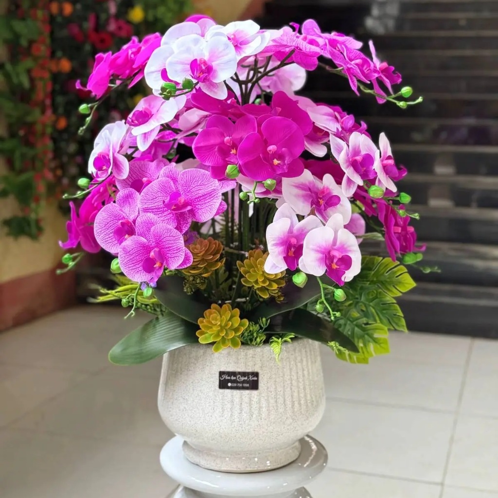 Chậu lan hồ điệp 15 cành tím mix trắng không chỉ làm đẹp không gian mà còn là món quà ý nghĩa, thể hiện sự tinh tế và trân trọng dành cho người nhận.